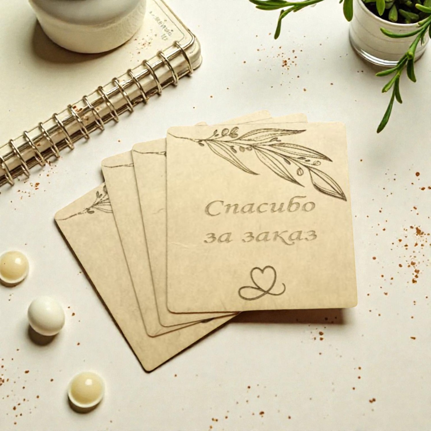 Тщательно продуманный дизайн, сочетающий в себе элегантность и лаконичность, привлекает внимание и подчеркивает заботливое отношение к каждому клиенту. Текст благодарности, нанесенный с безупречной точностью, звучит искренне и убедительно.