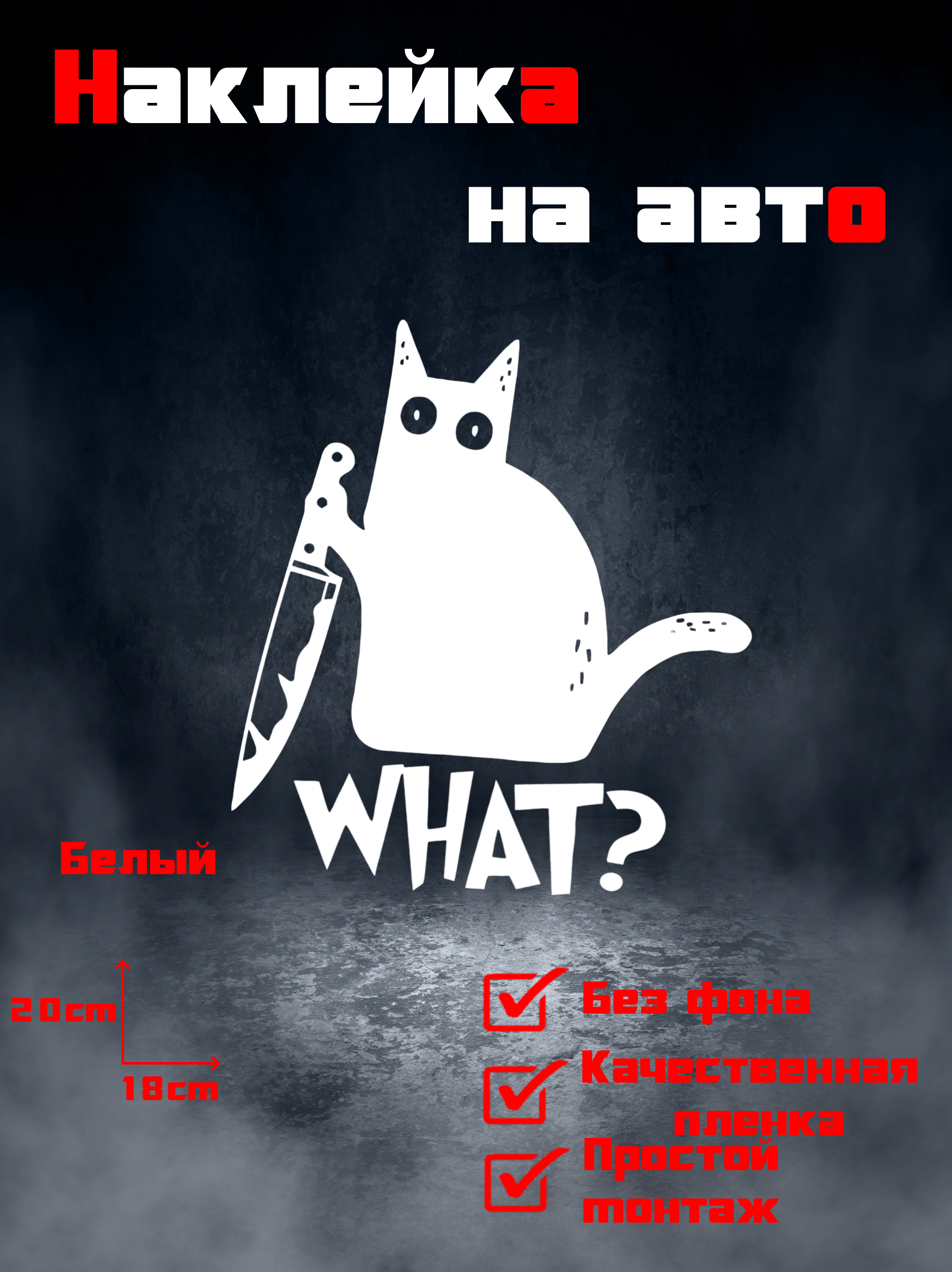 Яркая виниловая наклейка «Кот с ножом» от бренда PRO создание — оригинальный способ выразить индивидуальность вашего автомобиля! Удобна в нанесении, долговечна благодаря материалу высокого качества и прекрасно смотрится на любом транспорте. Продукция из России позволит вашему автомобилю выделяться из потока машин и привлекать восхищенные взгляды окружающих!