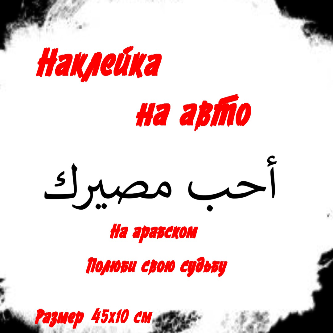Откройте миру свой стиль с виниловой наклейкой от бренда PRO создание! Украсьте автомобиль элегантной надписью на арабском «Полюби свою судьбу». Легко наносится, идеально держится, придает индивидуальность вашему транспортному средству. Сделано в России – качество проверено временем. Упаковка: картонный пакет. Один клик до уникального автостайлинга уже сегодня!